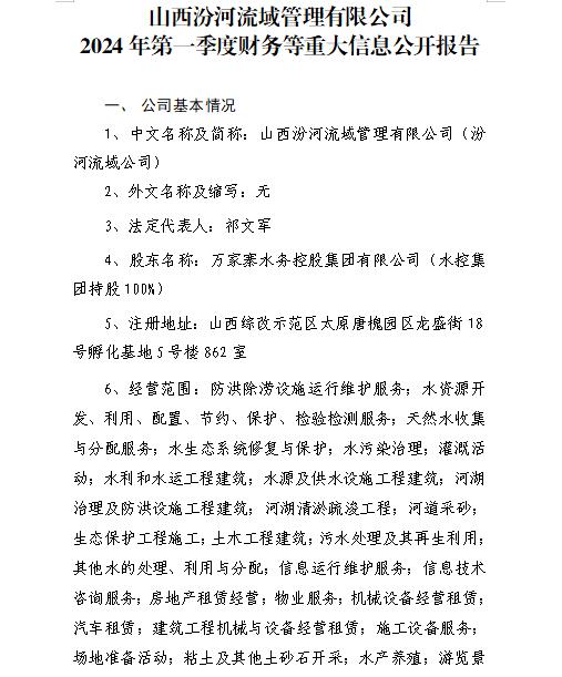 2024年第一季度財務等重大信息公開報告