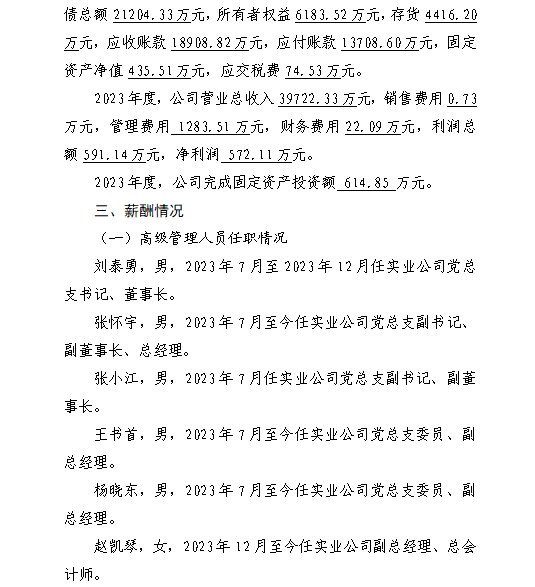 山西汾河二庫管理有限公司2023年度財務等重大信息...