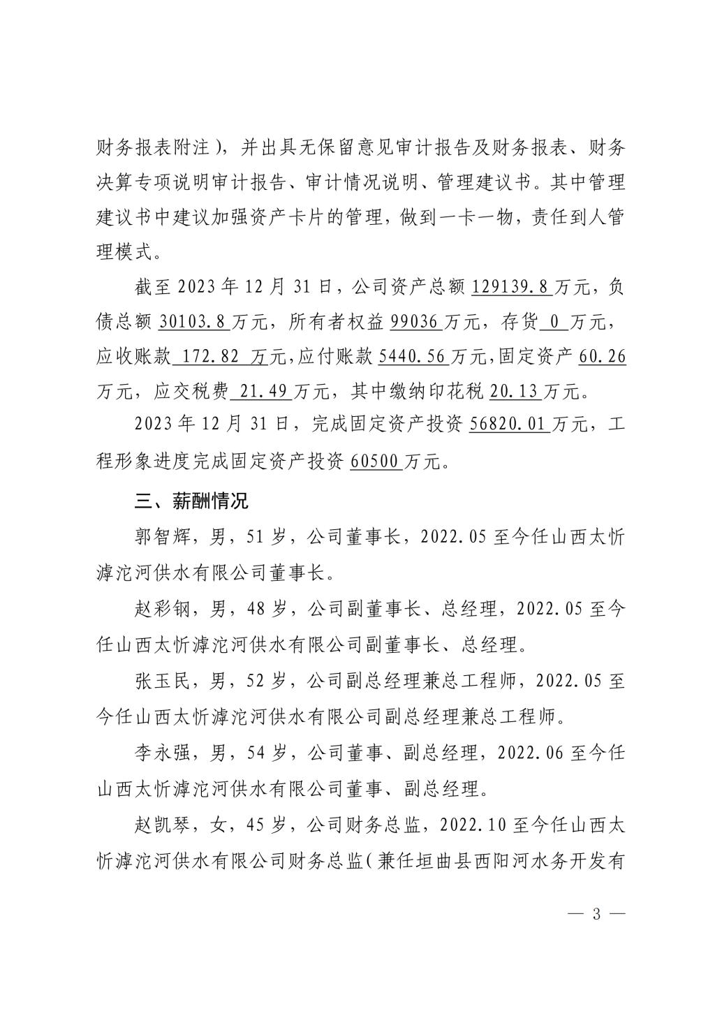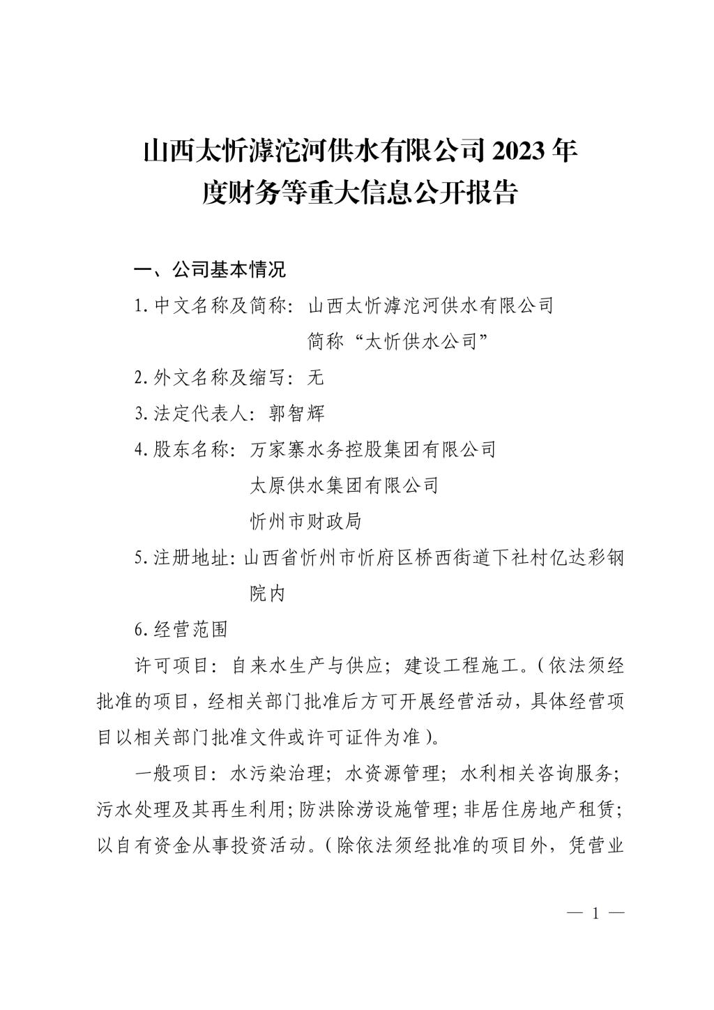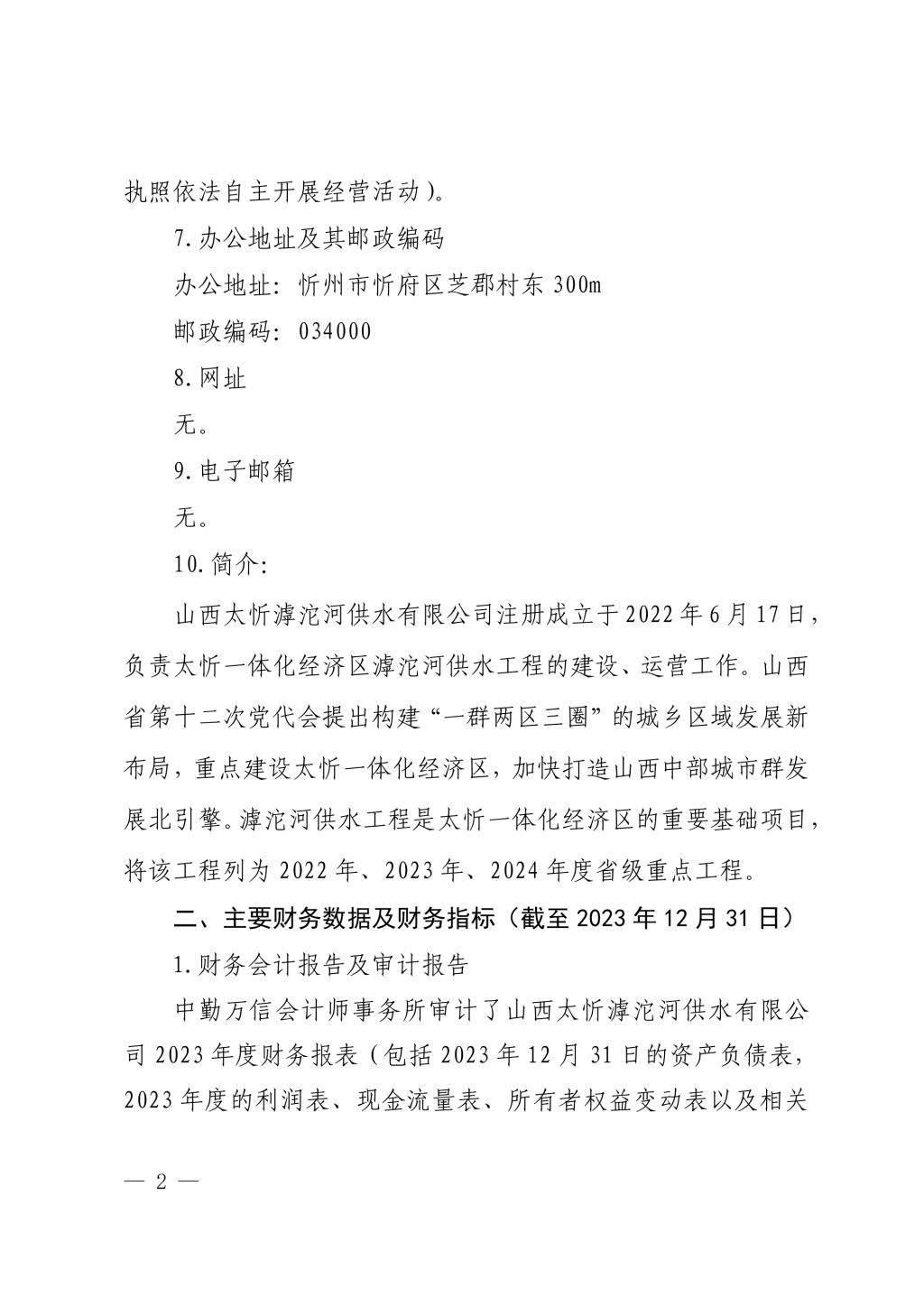 山西太忻滹沱河供水有限公司2024年一季度財務等重...