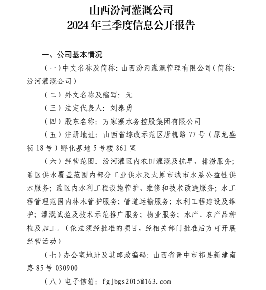 山西萬家寨引黃水務(wù)集團有限公司2024年第三季度信...