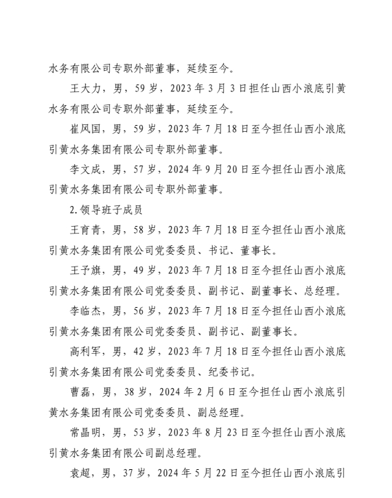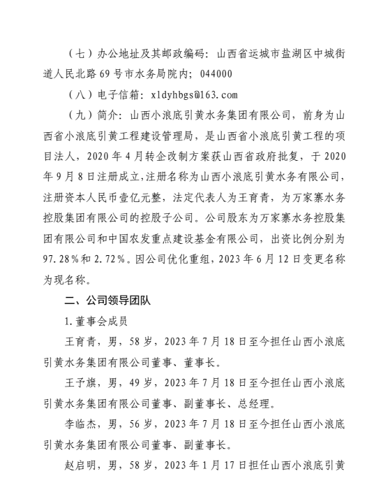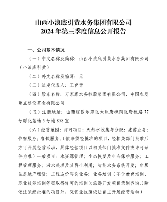 山西小浪底引黃水務集團有限公司2024年中期信息公...