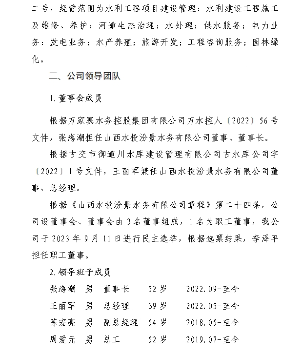 山西柏葉口水庫管理有限公司2024年中期信息公開報...