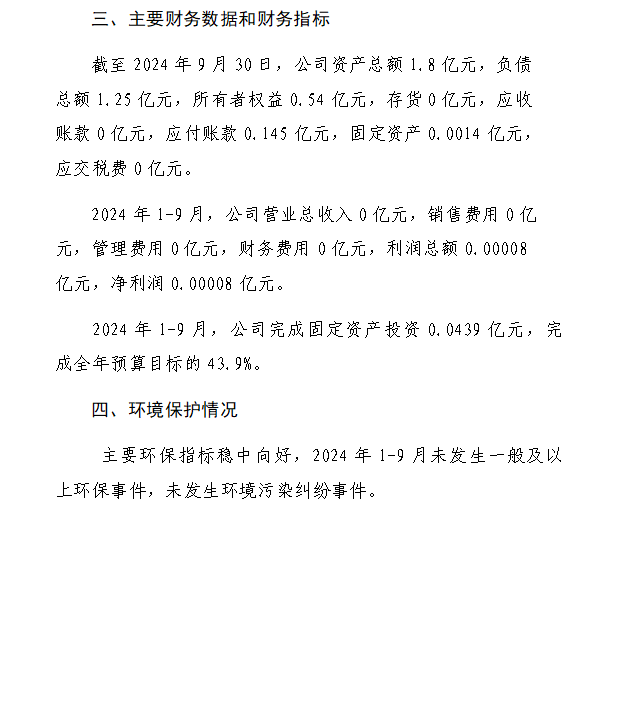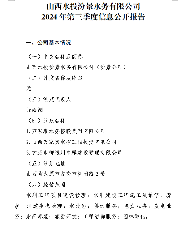 山西滹沱河管理有限公司2024年三季度信息公開報告