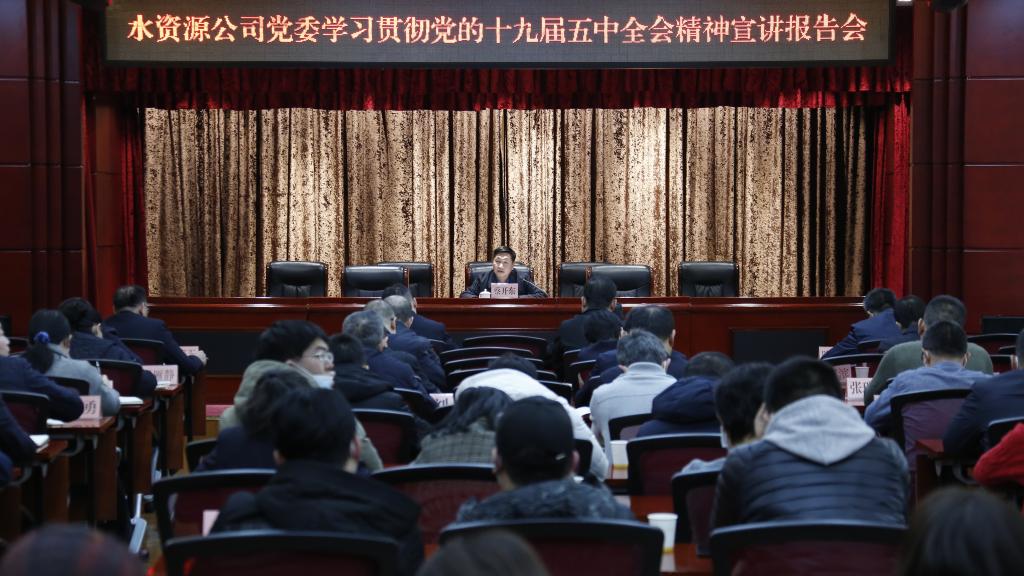 12月8日,萬(wàn)家寨水務(wù)控股集團(tuán)黨委委員、副總經(jīng)理蔡開東為水資源公司全體黨員干部作學(xué)習(xí)貫徹黨的十九屆五中全會(huì)精神宣講報(bào)告。水資源公司領(lǐng)導(dǎo),副總工程、紀(jì)委副書記,各部室全體干部職工參加。