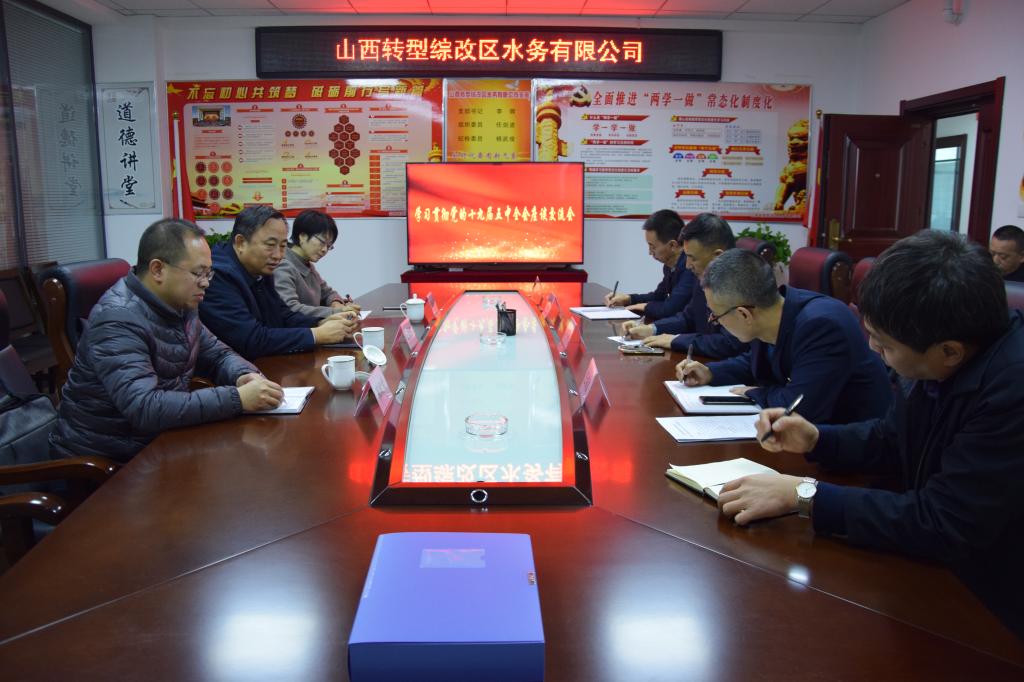 12月10日,萬家寨水務(wù)控股集團(tuán)黨委委員、紀(jì)委書記王晉斌到綜改水務(wù)公司作學(xué)習(xí)貫徹黨的十九屆五中全會精神宣講,并與干部職工座談交流,期間還實(shí)地調(diào)研了解綜改水務(wù)公司管網(wǎng)鋪設(shè)、應(yīng)急供水等推進(jìn)情況。