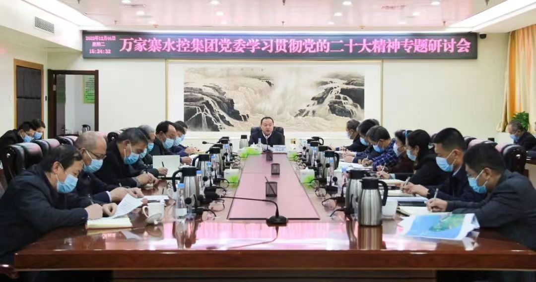 12月6日,萬家寨水務控股集團召開黨委擴大會暨黨委理論學習中心組(擴大)學習會議,圍繞學習貫徹黨的二十大精神開展專題研討。集團公司黨委書記、董事長馮志君主持會議并講話。集團黨委班子成員蘭康杰、范世平、曹池、常建忠、彭柏青,總會計師曹志剛,總法律顧問馬愛龍,副總工程師,首席專家,各部室、中心主要負責人參加學習。